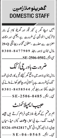 Jang Sunday Classified Ads 22 June 2025 For House Staff