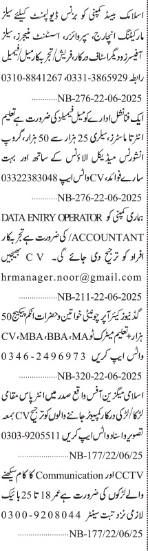 Jang Sunday Classified Ads 22 June 2025 For Miscellaneous
