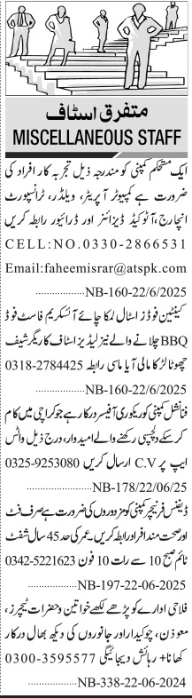 Jang Sunday Classified Ads 22 June 2025 For Multiple Staff