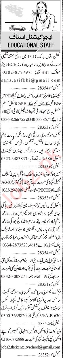 Jang Sunday Classified Ads 22 Oct 2023 For House Staff
