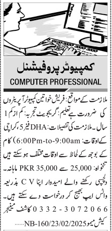 Jang Sunday Classified Ads 23 Feb 2025 For Computer Staff