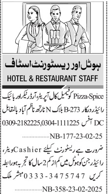Jang Sunday Classified Ads 23 Feb 2025 For Hotel Staff
