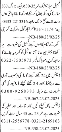 Jang Sunday Classified Ads 23 Feb 2025 For House Staff
