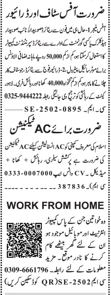 Jang Sunday Classified Ads 23 Feb 2025 For Multiple Staff