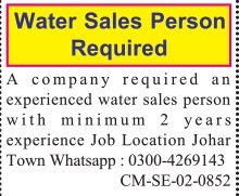 Vacant posts including sales staff and sales person are announced in Mineral Water Company Johar Town Lahore, lahore Punjab Pakistan as per 24 February 2025 advertisement in daily Jang Newspaper. Candidates with Intermediate and Matric etc. educational background will be preferred.