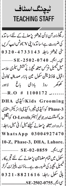 Jang Sunday Classified Ads 23 Feb 2025 For Teaching Staff