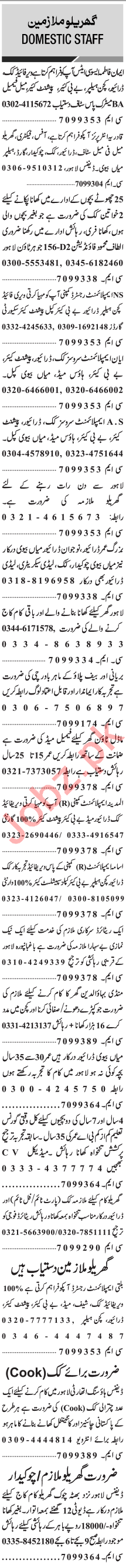 Jang Sunday Classified Ads 23 May 2021 for Domestic Staff
