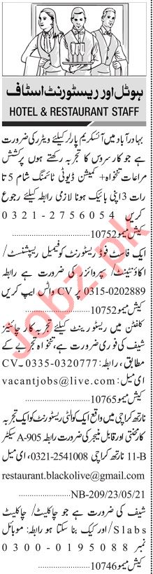 Jang Sunday Classified Ads 23 May 2021 for Hotel Staff
