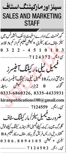 Vacant posts including sales staff, telemarketing officer, marketing staff and marketing officer are announced in Marketing Company Lahore, lahore Punjab Pakistan as per 24 October 2022 advertisement in daily Jang Newspaper. Candidates with Intermediate, Middle, Bachelor and Matric etc. educational background will be preferred.