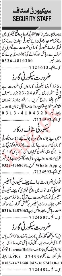 Jang Sunday Classified Ads 23 Oct 2022 for Security Staff