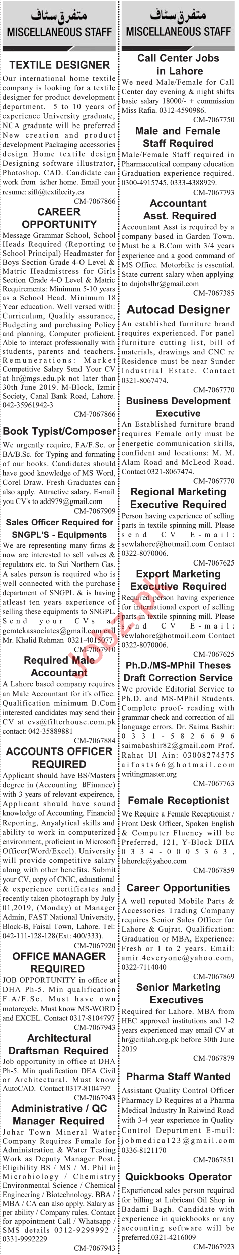 Jang Sunday Classified Ads 23rd June 2019 For General Staff