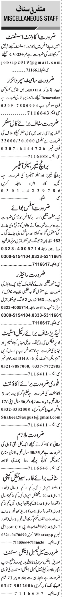 Jang Sunday Classified Ads 24 April 2022 For General Staff
