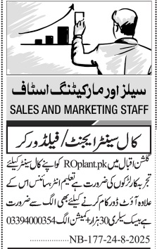Latest Call Center jobs and others Classifieds jobs in RO Plant closing date is around September 9, 2025, see exact from ad. Read complete ad online to know how to apply on latest RO Plant job opportunities.