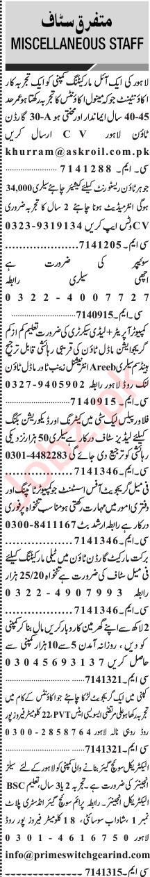 Private Company invites applications for job positions advertised in daily Jang dated 24 December 2023 for following vacancies in Lahore, lahore Punjab Pakistan.