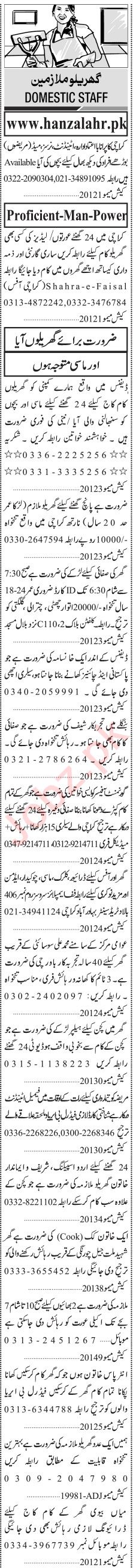 Jang Sunday Classified Ads 24 July 2022 For Domestic Staff
