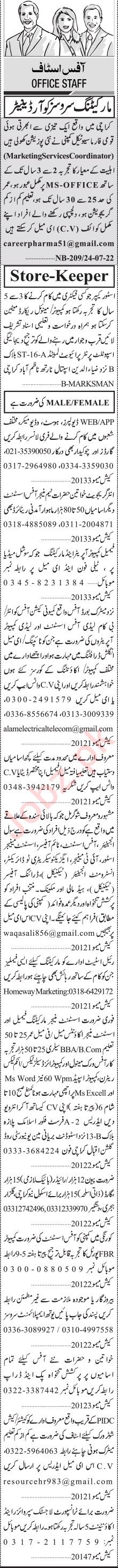 Jang Sunday Classified Ads 24 July 2022 for Office Staff