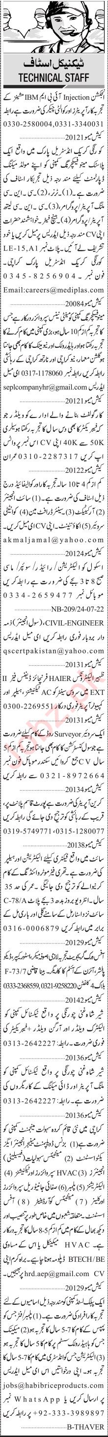 Jang Sunday Classified Ads 24 July 2022 For Technical Staff