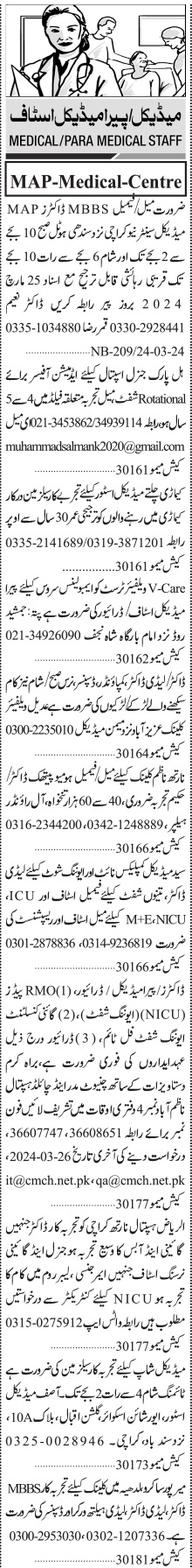 Jang Sunday Classified Ads 24 March 2024 for Medical Staff