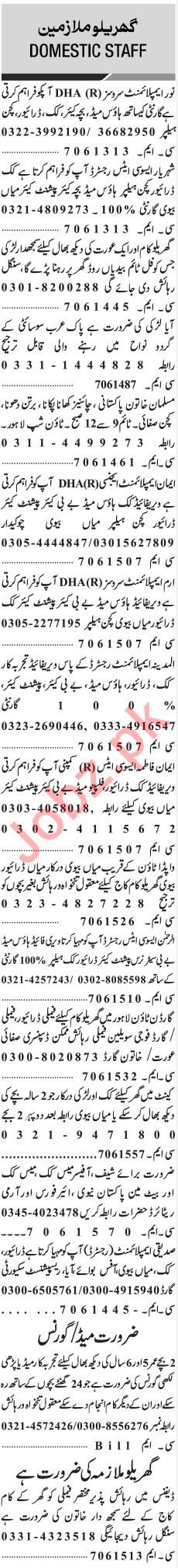 Jang Sunday Classified Ads 24th Feb 2019 for Domestic Staff