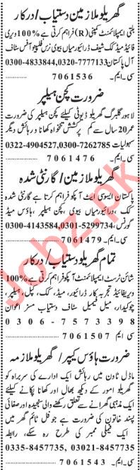 Jang Sunday Classified Ads 24th Feb 2019 For Domestic Staff