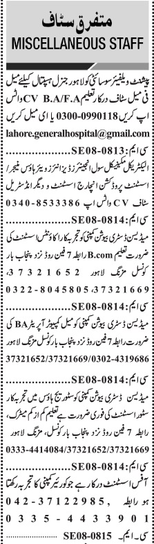 Vacant posts including electrical engineer, warehouse manager, hospital staff, store assistant, designer, civil engineer, accounts assistant, office assistant, assistant, office staff, mechanical engineer, assistant production incharge and computer operator are announced in Private Company Lahore, lahore Punjab Pakistan as per 26 August 2024 advertisement in daily Jang Newspaper. Educational qualifications required Bachelor, Intermediate, B.com, BBA, BA, Middle and Matric etc.