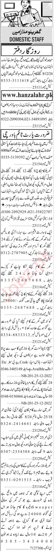 Jang Sunday Classified Ads 25 Dec 2022 For House Staff