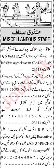 Jang Sunday Classified Ads 25 Dec 2022 For Multiple Staff