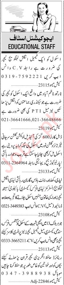 Jang Sunday Classified Ads 25 Dec 2022 For Teaching Staff