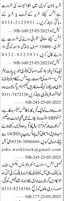 Jang Sunday Classified Ads 25 May 2025 For Management Staff