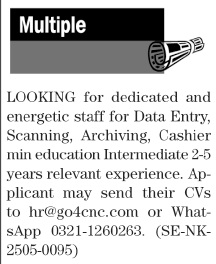 Jang Sunday Classified Ads 25 May 2025 For Multiple Staff