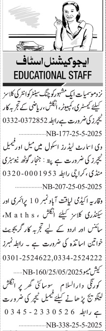 Jang Sunday Classified Ads 25 May 2025 For Teaching Staff
