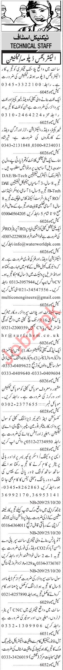 Jang Sunday Classified Ads 25 Oct 2020 For Technical Staff