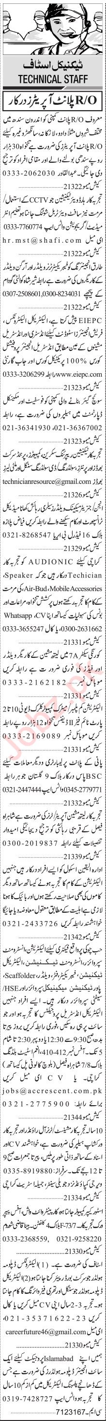 Private Industry Karachi, karachi Sindh Pakistan invites applications from eligible candidates for the post of generator mechanic, fabricator, electronics engineer, hse supervisor, safety supervisor, instrument technician, welder, scaffolder, electrician, lathe machine operator, ro plant operator, electrical engineer, electrical technician, repairing technician, cctv technician, site engineer, computer clerk, instrument supervisor, store keeper, engineer, machinist, plumber, technician, organ welder, turner and helper as per advertisement of September 26, 2022 published in daily Jang Newspaper. Candidates with DAE, Bachelor, Matric and Intermediate etc. educational background will be preferred.