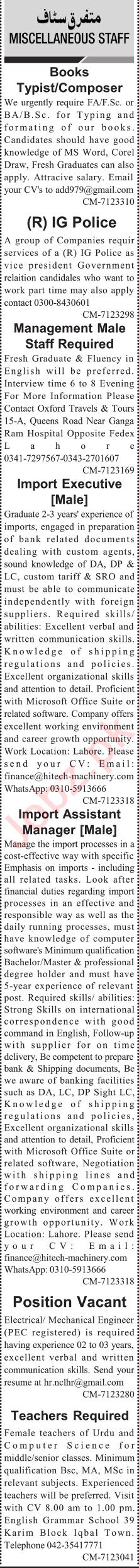 Jang Sunday Classified Ads 25 Sept 2022 for Multiple Staff