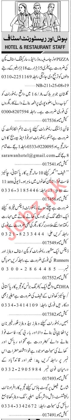 Jang Sunday Classified Ads 25th Aug 2019 For Hotel Staff