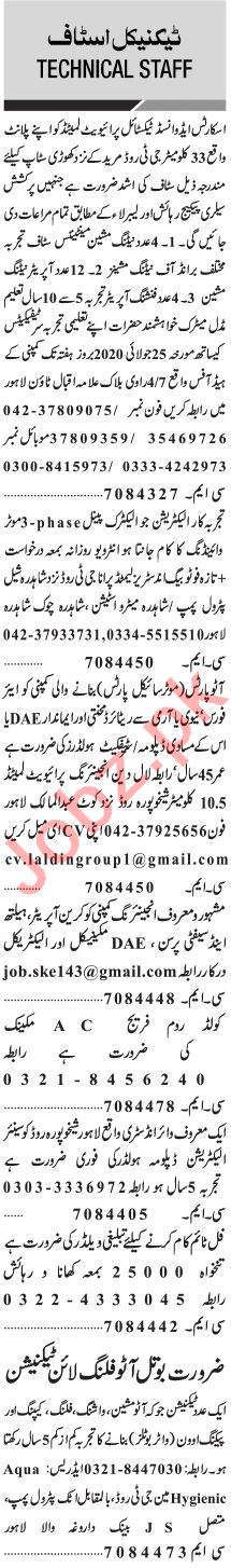 Jang Sunday Classified Ads 26 July 2020 For Technical Staff