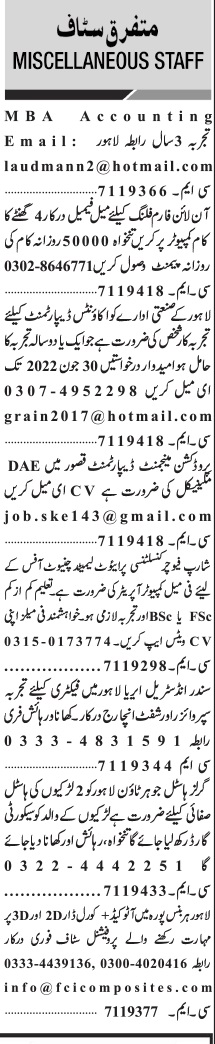 Jang Sunday Classified Ads 26 June 2022 For Multiple Staff
