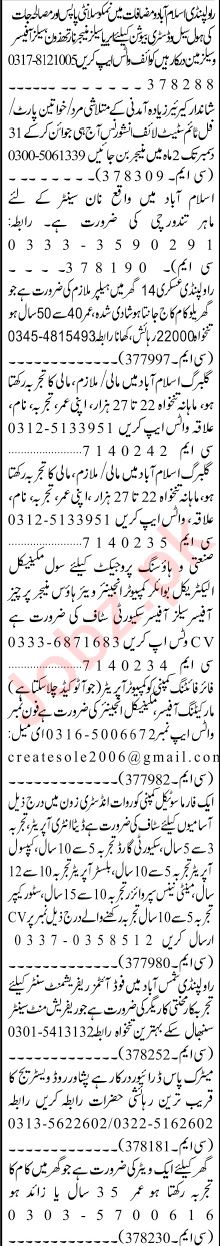 Jang Sunday Classified Ads 26 Nov 2023 For Business Stafff