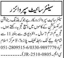 Construction Company is looking for candidates for following posts as per job advertisement published in daily Jang Newspaper of October 27, 2025 for location F-7 Islamabad, islamabad Islamabad Pakistan:
