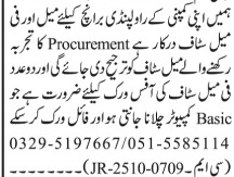 Private Company is looking for candidates for following posts as per job advertisement published in daily Jang Newspaper of October 27, 2025 for location Rawalpindi, rawalpindi Punjab Pakistan: