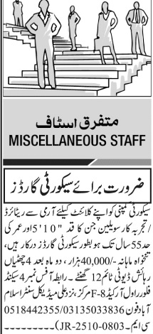Security Company is looking for candidates for following posts as per job advertisement published in daily Jang Newspaper of October 27, 2025 for location F-8 Markaz Islamabad, islamabad Islamabad Pakistan: