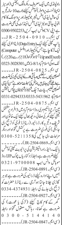 Private Company is looking for candidates for following posts as per job advertisement published in daily Jang Newspaper of April 28, 2025 for location Rawalpindi, islamabad Punjab Pakistan: