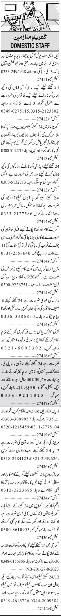 Jang Sunday Classified Ads 27 August 2023 for House Staff