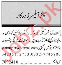 Jang Sunday Classified Ads 27 Dec 2020 for Sales Staff