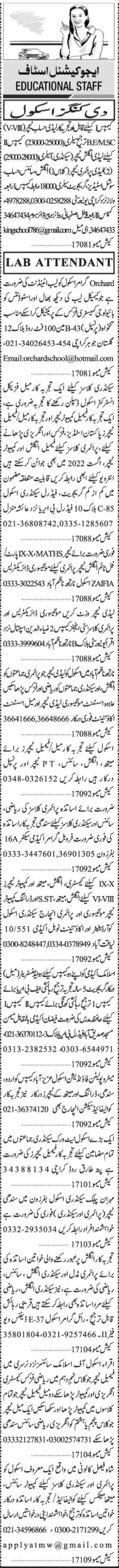 Jang Sunday Classified Ads 27 Feb 2022 for Teaching Staff
