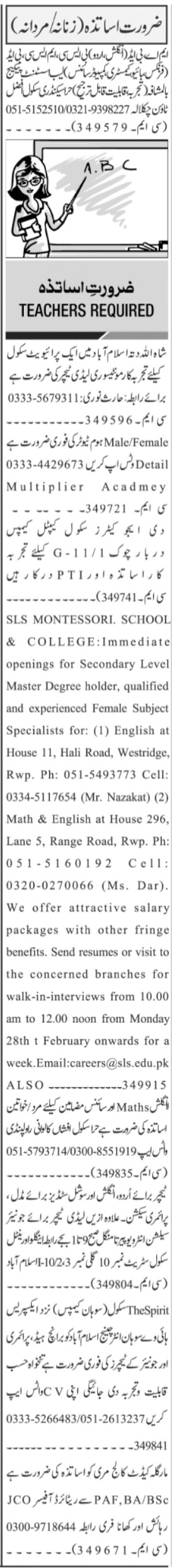 Jang Sunday Classified Ads 27 Feb 2022 For Teaching Staff
