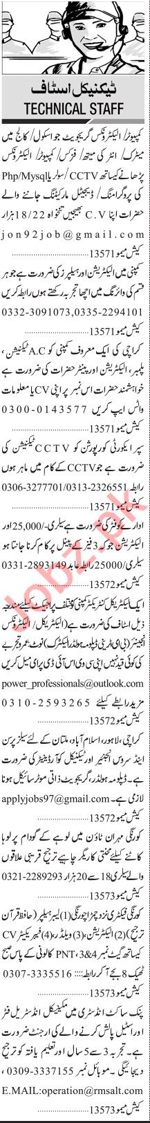 Jang Sunday Classified Ads 27 June 2021 For Technical Staff