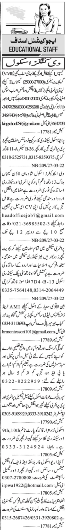 Jang Sunday Classified Ads 27 March 2022 For Educational