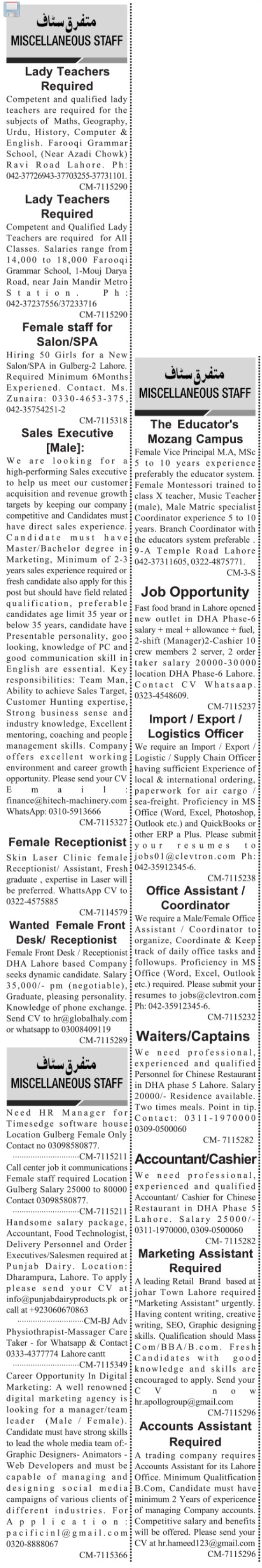 Private Company invites applications for job positions advertised in daily Jang dated 28 March 2022 for following vacancies in Lahore, lahore Punjab Pakistan.