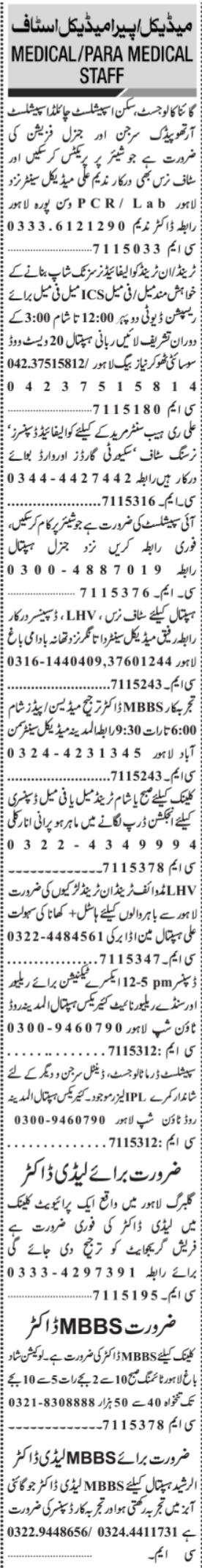 Jang Sunday Classified Ads 27 March 2022 For Medical Staff